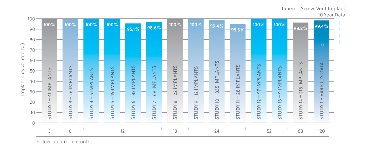 Documented 98.7% implant survival rate mean1-14