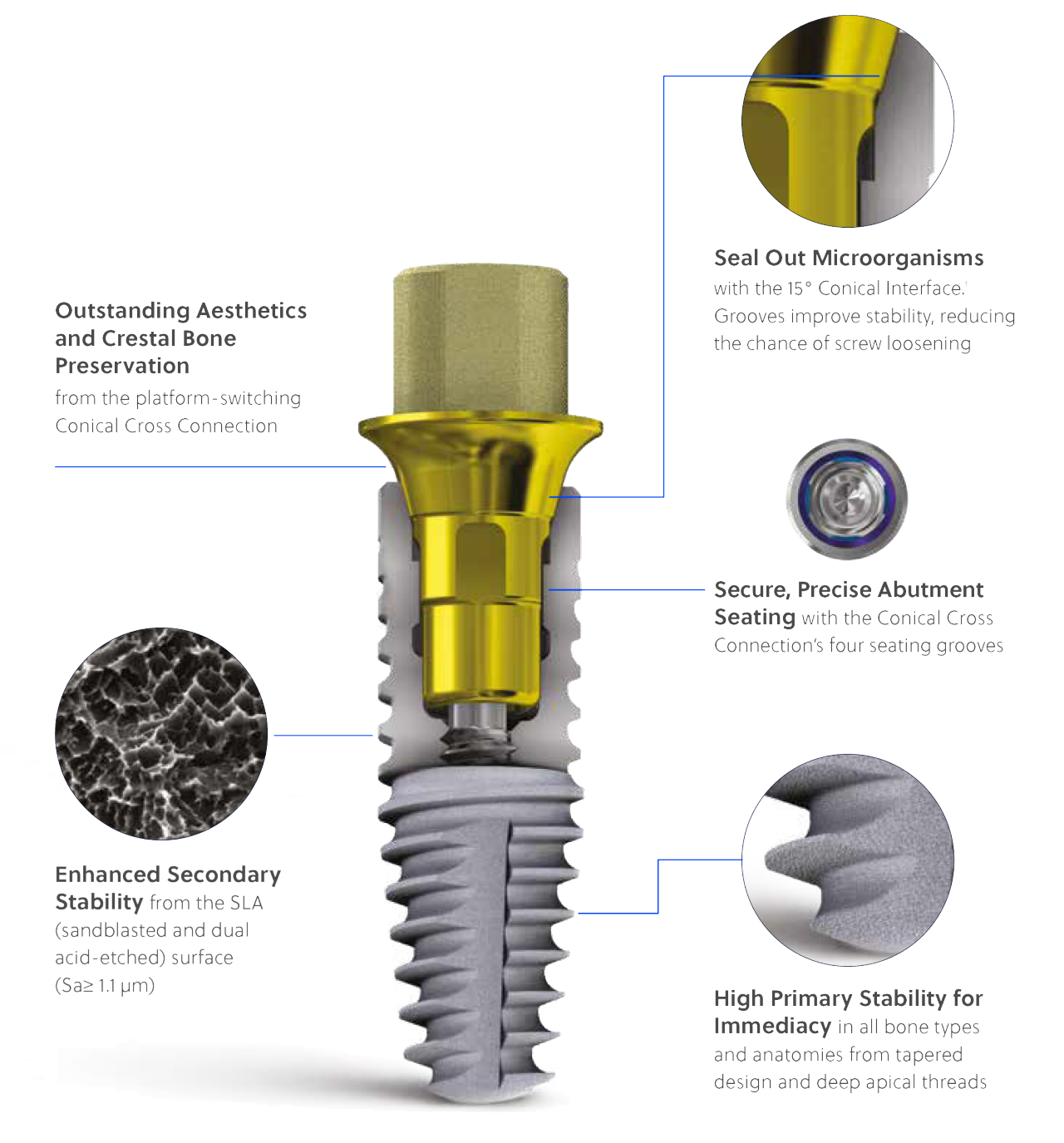 - Comprehensive restorative solutions with a precise connection fit – flexibility to restore your patients your way with the proven Conical Cross Connection